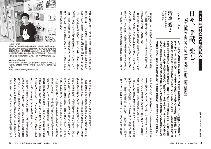 長年、ろうの子どもたちとふれあいながら「手話の世界」撮り続ける清水愛さん。「ろう者へのまなざしは平らかであってほしい」というお話が心にしみる。